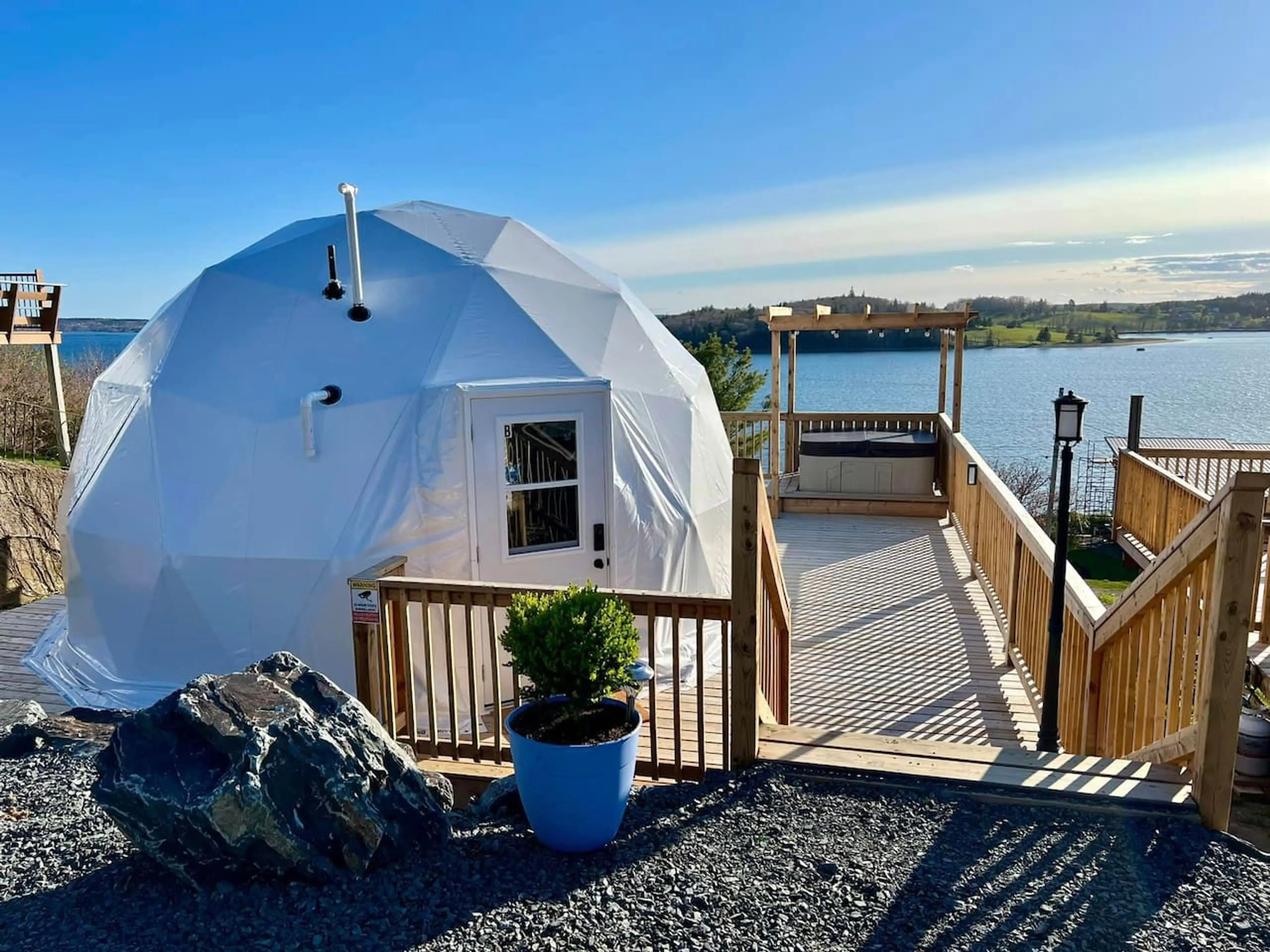 Enjoy a new spin on geodesic domes, where you can have a quiet, private stay, but are only a few minutes walk to downtown Lunenburg, a world UNESCO site. Sleep in and let the sun wake you, or adventure to one of the many local beaches. Take advantage of our EPIC ocean view from your own hot tub or ...